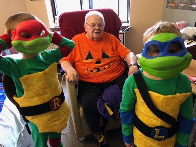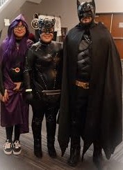 Trick or treating was fun! The people who were handing out the candy wore great costumes.
