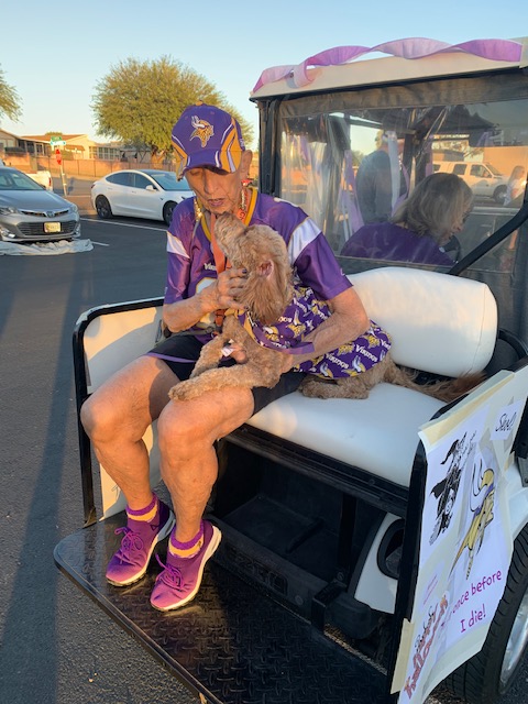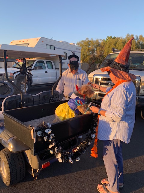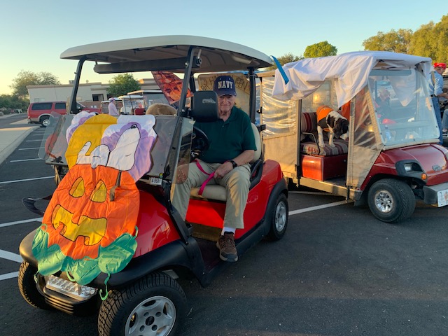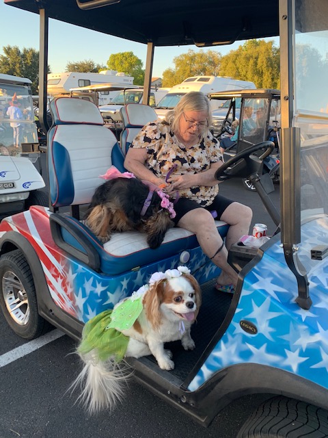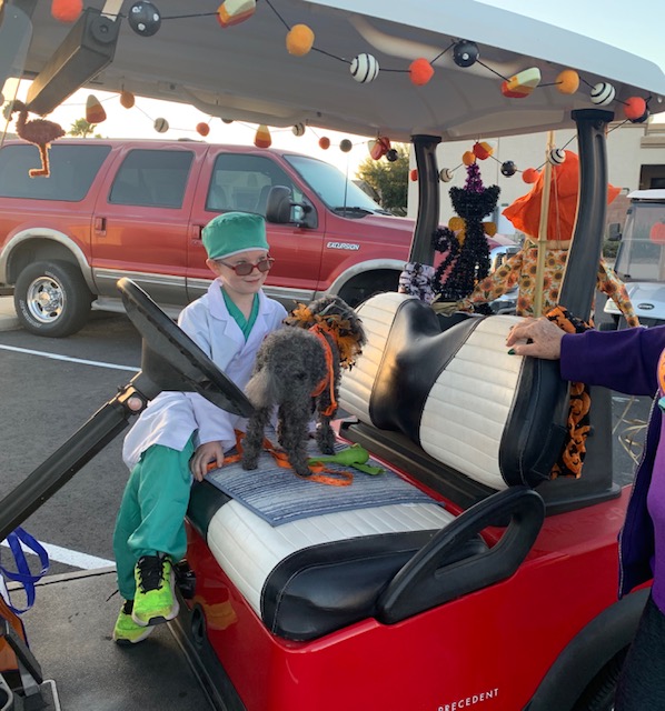 There was a lot of decorated golf carts and dogs and people in costumes. I didn’t get to take half the pictures of the people in golf carts or the dogs that participated. It was a lot of fun, especially for the dogs they got treats from kind people who were watching the the parade.