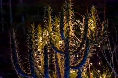 People put lights on their cacti, Ouch…. Those prickers are mean, and you have to put the lights on and take them off. Their fingers have to be sore..