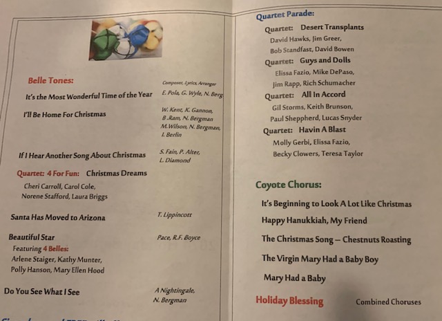 We did go see another barbershop quartet show in the park. It was a Christmas event and they all harmonized splendidly. Another fun show.