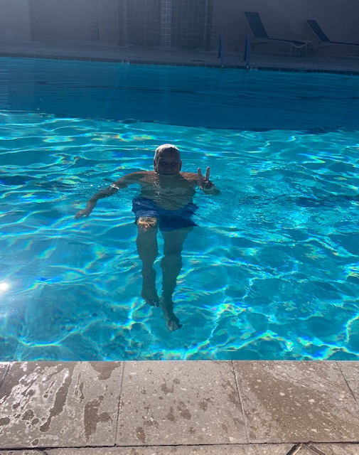 The weather here has been incredible almost everyday since we been here in October and so far December as been great too, so we’ve been at the pool in Voyager for a many a day. Especially Dave who does laps. I do laps too, but with a noodle, Not quite the same.