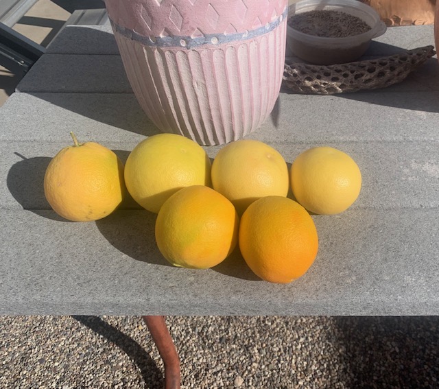 In December some citrus trees in Arizona are ready to be harvested. Which is wonderful because lots of people at Voyager have grapefruit, lemon and orange trees, which they so kindly pick and put in front of their home for people passing by and they are yummmmy!