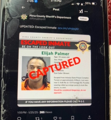 Just before 2 p.m., the Pima County Sheriff’s Department posted on social media that he had been captured.
