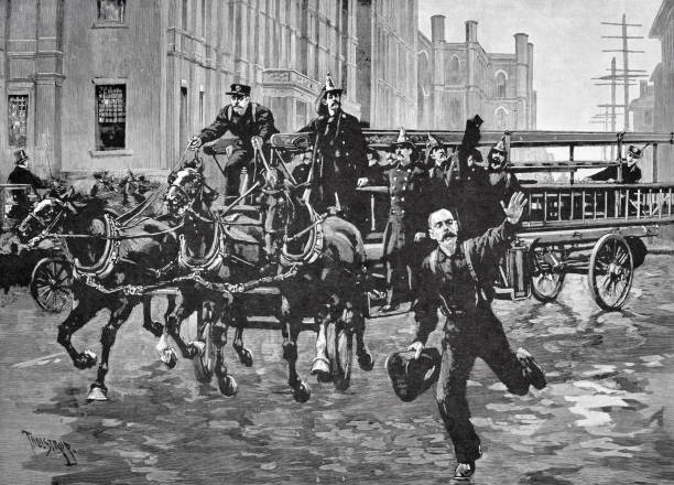 An old fire truck pulled by horses was called a horse drawn fire engine. Fire departments used horses to pull hose wagons, steam-powered pumpers, and hook-and-ladder carts.