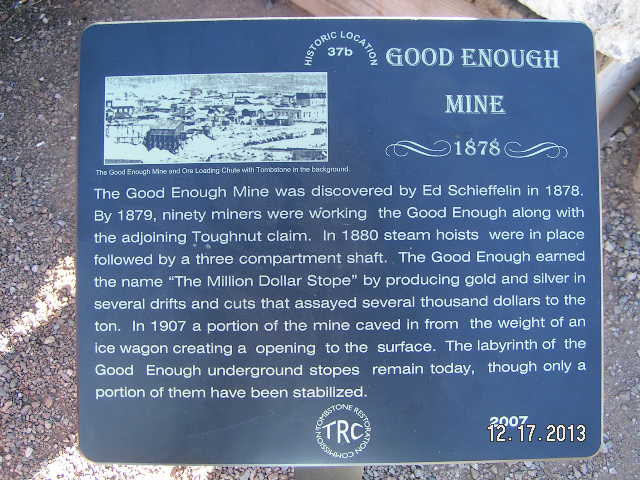 The history of mining in Tombstone began when Ed Schieffelin filed his first mining claim in 1877 he named it “Tombstone,” because he’d been told that his tombstone was all that he would find in the parched, Apache-ruled hills of southeast Arizona. A year later, when he filed his second claim, he named it “Good Enough” because the silver ore was so rich that it was good enough to satisfy him.