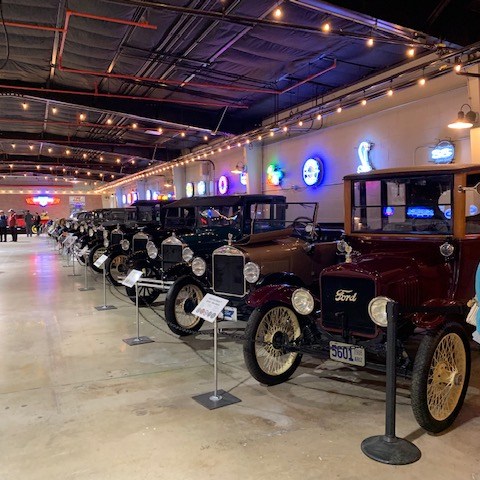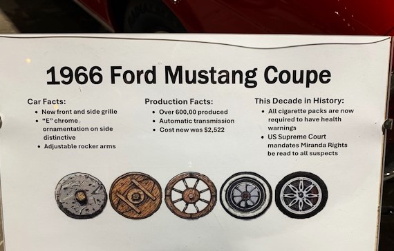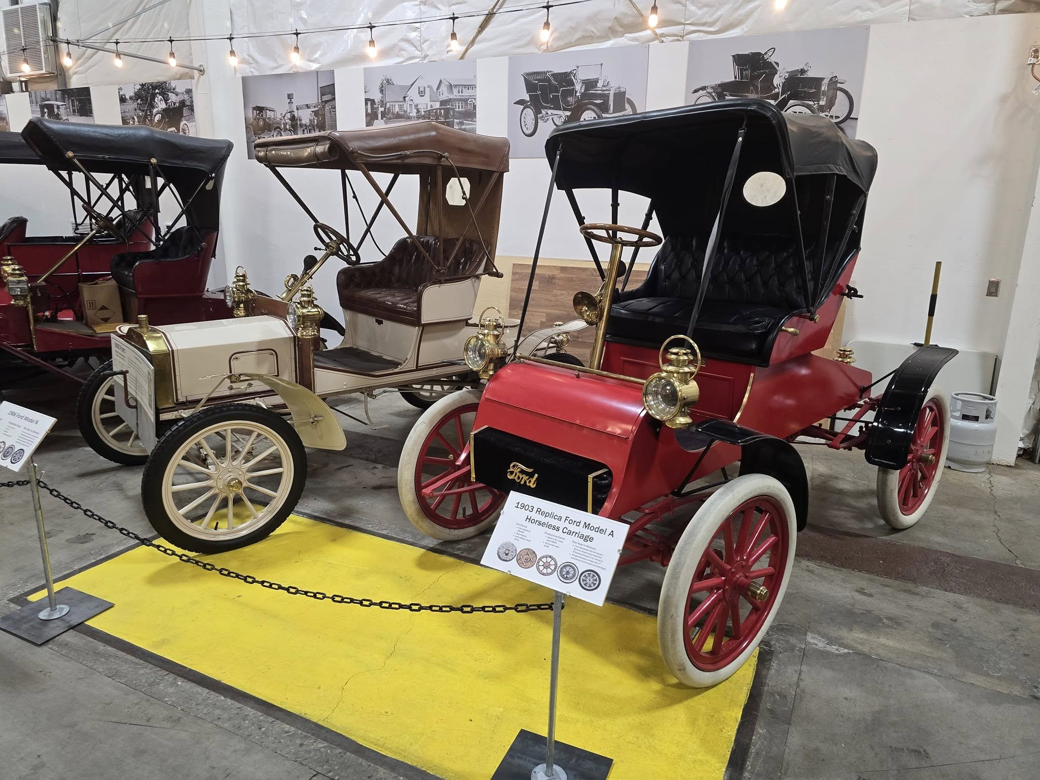 You walk through the gift shop and then into the museum with everyting from horseless carriage to a new 350 Shelby, with lots in between.