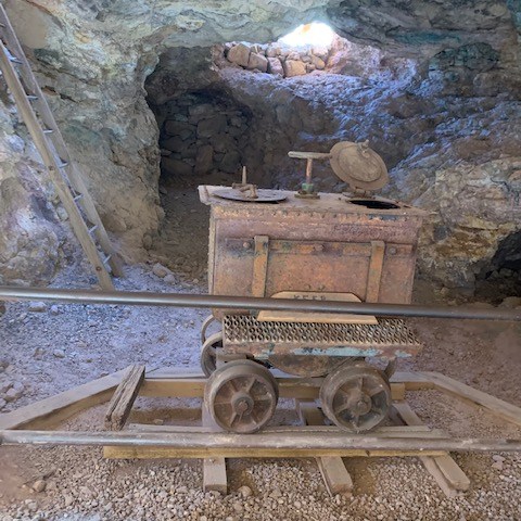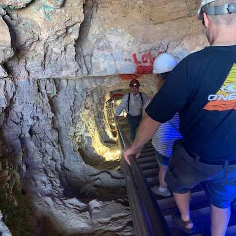Our guide told us how hard a miner’s life was. They faced many dieases and dangerous working conditions, miners died when they were only 30 years old. Early miners used a series of ladders that descended hundreds of feet into the ground. Some fell off ladders and slipped on rocks. At the end of the day, when the miners were tired, not everyone made it to the top successfully. Hoists and open cages replaced ladders, but miners sometimes fell or banged into jutting rocks. Miners suffered from mercury, lead or arsenic poisoning. Plus metals like copper, zinc and non-metallic minerals like asbestos, talc and borax. Many got sick from drinking dirty water and living too close together. Power drills and electric lights were advancements that also carried risks. Power drills created more dust, so miners who inhaled too much silica developed the chronic lung disease called silicosis. Many miners were electrocuted after electric lights were installed in underground mines. Also from bugs like hookworm and dynamite explosions.