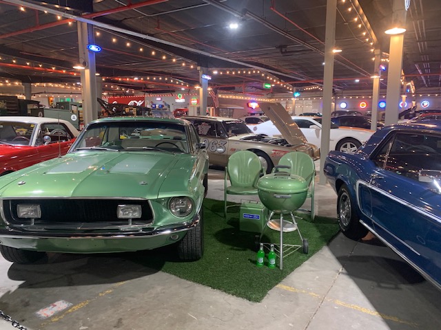 1968 Mustang GT/CS Nice car, I like the display with the chairs, gril and green drinks in the bottles.