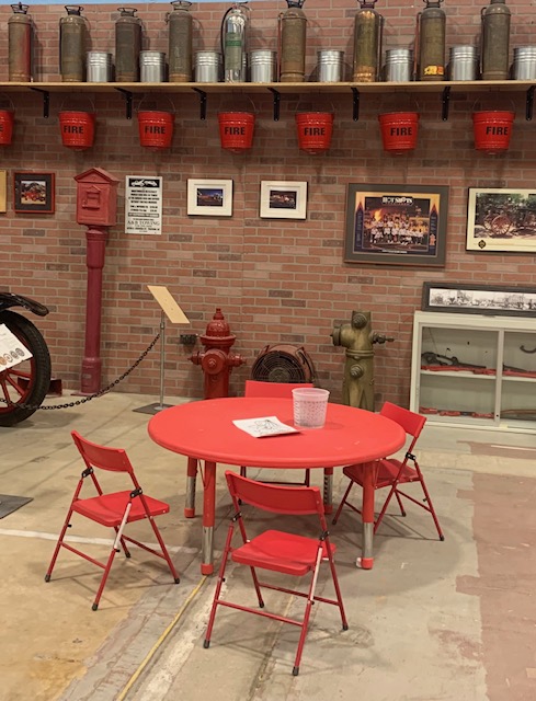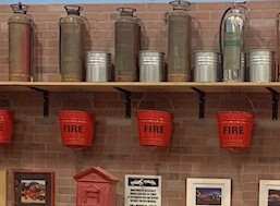 When you jump make sure you aim for the red dot. I learned at the museum that fire buckets have round bottoms, you can see from picture. The rounded bottom creates a strong, directed stream of water when it’s thrown at a fire and they can’t stand up on their own, making them less likely to be stolen.