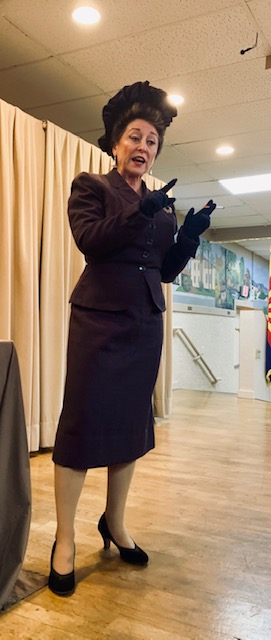 She dressed exactly like a professional lady did in the 1940s with high heels, hat and gloves. She even pretended to be smoking a cigarrette while talking.
