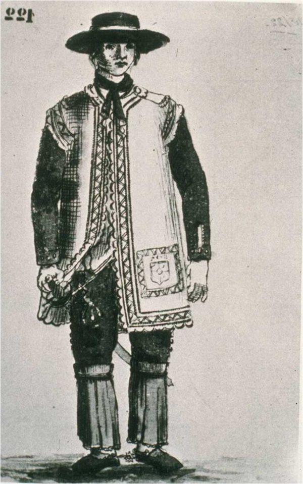 On the left is a representation of the living quarters of a soldier with a family, while the space on the right reflects a barracks for bachelor soldiers. The soldiers staying in the barracks hung their uniforms on pegs on the wall and also stored their weapons here. They also ate at a communal table. On one of the barracks beds is a cuera. It is made from seven layers of deerskin and was worn as protection from arrows.