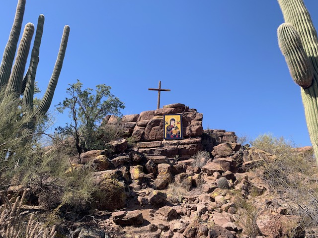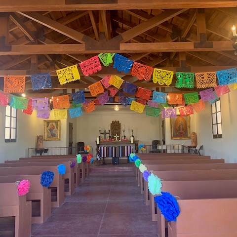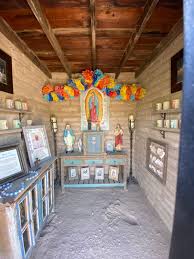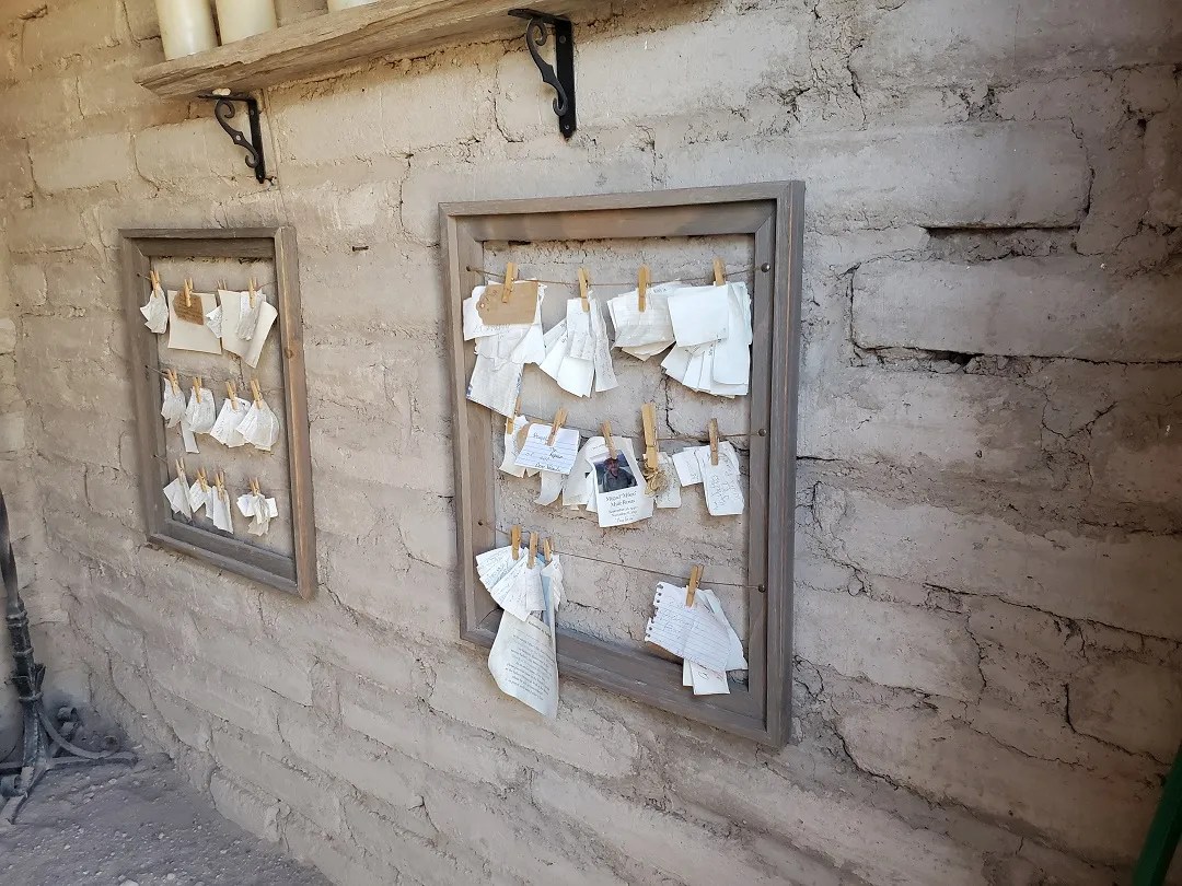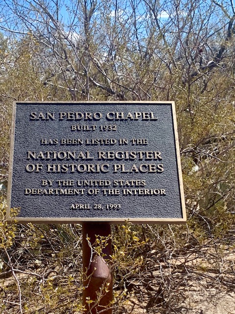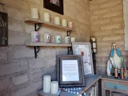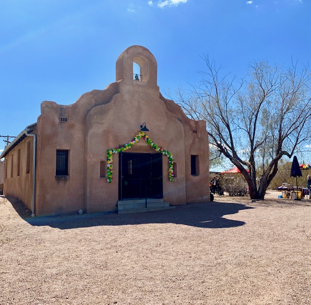 It is called La Capillita, which means little chapel. This small sanctuary is a reconstruction of the earliest religious structure on this site. First erected in about 1915, La Capillita was served by a Carmelite father who rode out from Holy Family Parish in Tucson for the services. The community gathered in front of this tiny structure under the shade of mesquite trees while the priest stood inside. In 1997, an archeological exploration revealed the original walls, the mud adobe foundation, and the packed dirt floor of the original sanctuary.  The sanctuary was restored with historical accuracy.