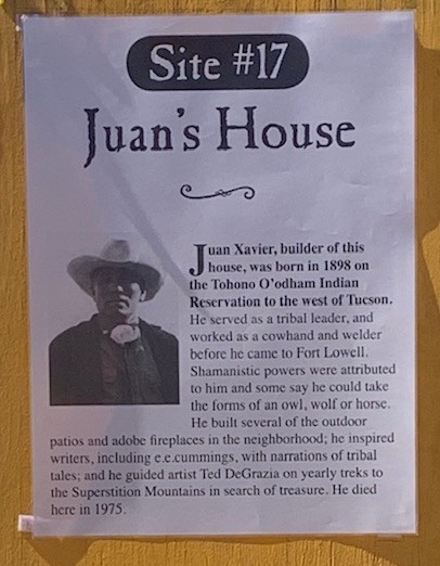 Built in 1956 by Juan Xavier, a tribal leader and former cowhand and welder, the Juan Xavier House stands as a testament to indigenous heritage and cultural exchange. Xavier, born on the Tohono O’odham Indian Reservation, was known for his storytelling and his contributions to the neighborhood, including the construction of outdoor patios and adobe fireplaces.