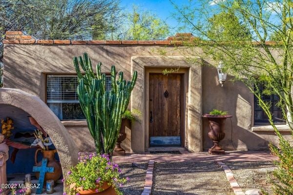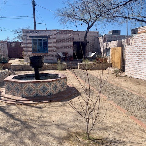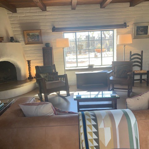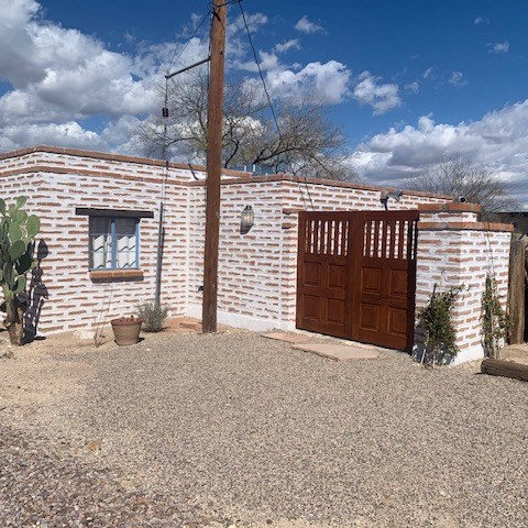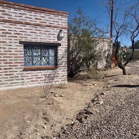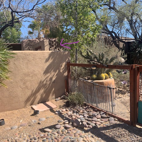 One of the Mansions. Known as “The Hen-House Wall” a designated historic piece of Tucson history located in Fort Lowell Historic Neighborhood. The house was built in 1873 and the holes in the wall provided ventilation for the hen house that supplied Ft. Lowell and the neighborhood with chickens and eggs. Abandoned in 1891 the mud adobe was rebuilt in the late 1930’s. A major renovation in the 1990’s joined the henhouse with its sutler’s cottage to create an updated modern retreat and the henhouse wall became incorporated into the house to reuse the historic structures. The house remains a cherished memorial to their legacy, owned and inhabited by their descendants.