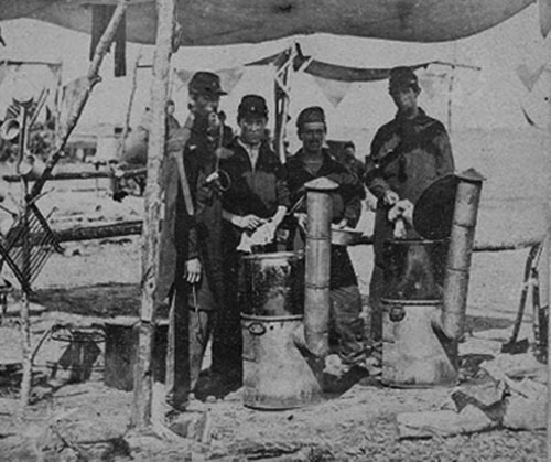 Volunteers were cooking food that the soldiers would have eatten back then.