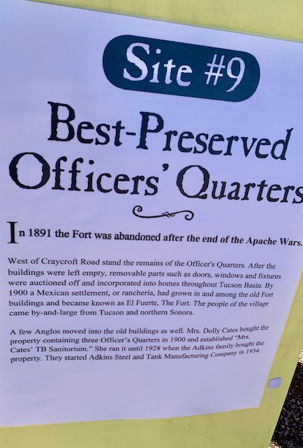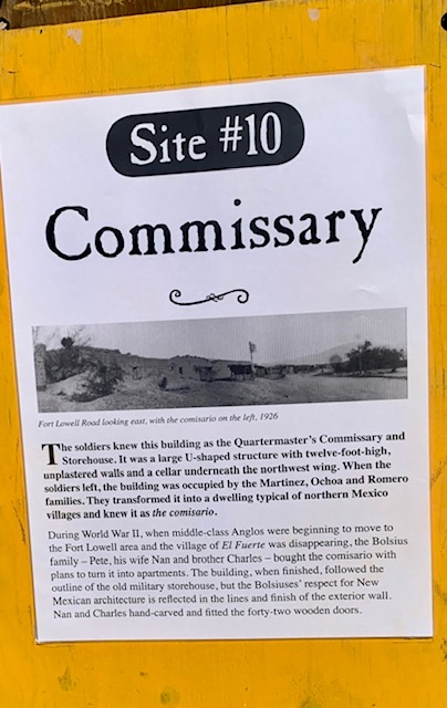 After the fort was abandoned the commissary building was modified and converted to apartments. As of March 1, 2023. The City of Tucson now owns the property. We talked to a lady who was on the, Old Fort Lowell Neighborhood Association, Inc., she lived in one of the apartments and said they were very nice and she enjoyed living there.