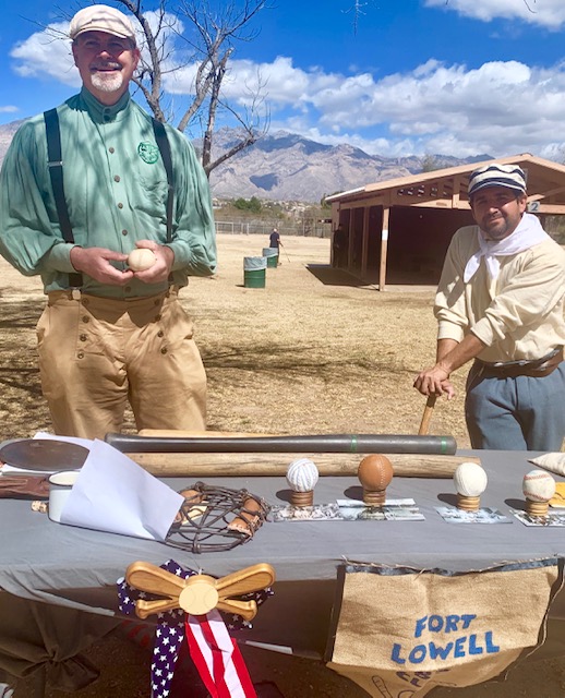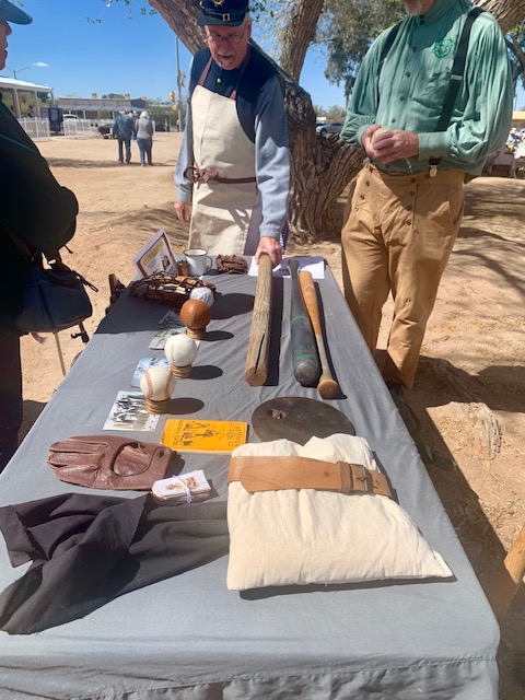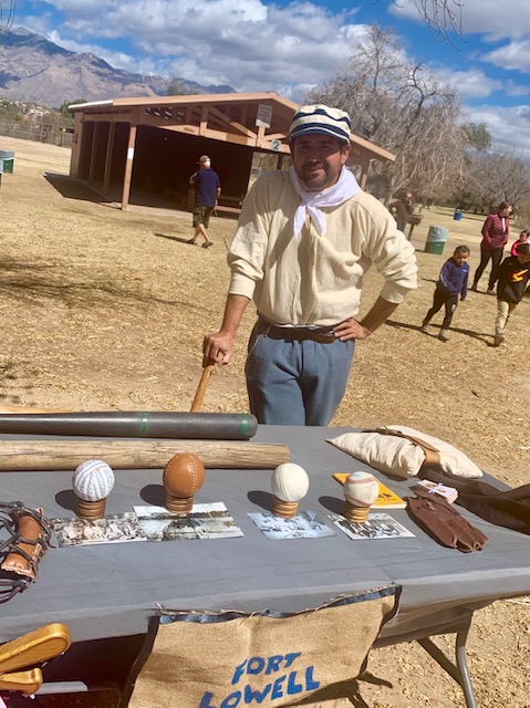 Fort Lowell had a baseball team. On the table they had home made balls, bases and bats that were used back then. Batter, Batter – Swing
