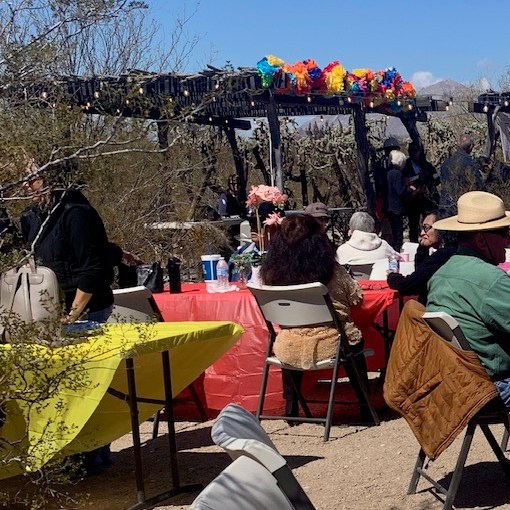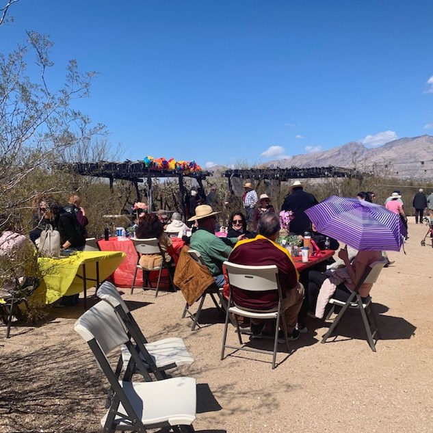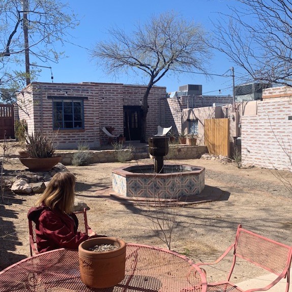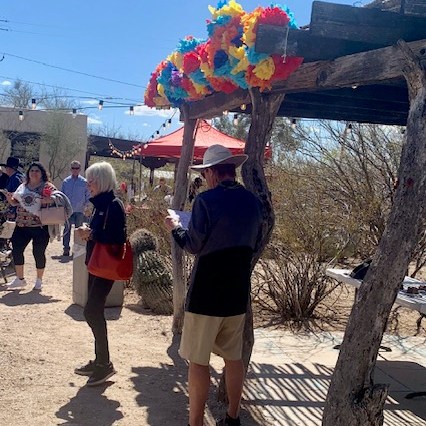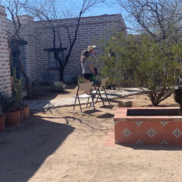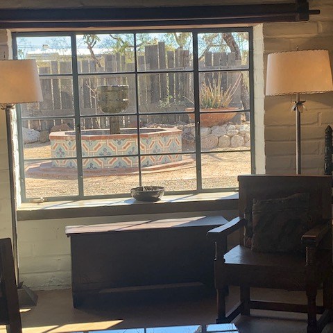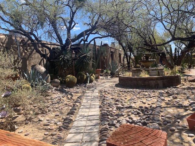 It was gorgeous! In 1873 John B. “Pie” Allen built a trading post near Fort Lowell.  19-room structure contained storeroom, a bar, gaming rooms for officers and enlisted men, and living quarters. The post trader provided necessary and welcome diversions for the soldiers. After several uses the ranch fell to ruins. The property was purchased by the Bolsius Family in 1934. In 1974 and again in 2022 the house had major alterations and in 2023 the house was purchased again from people from New York. They were kind enough to let people see their beautiful mansion. Dave was talking to the owners and joking asked where the pool was, the owners then pointed to where the in ground pool was, no joke.