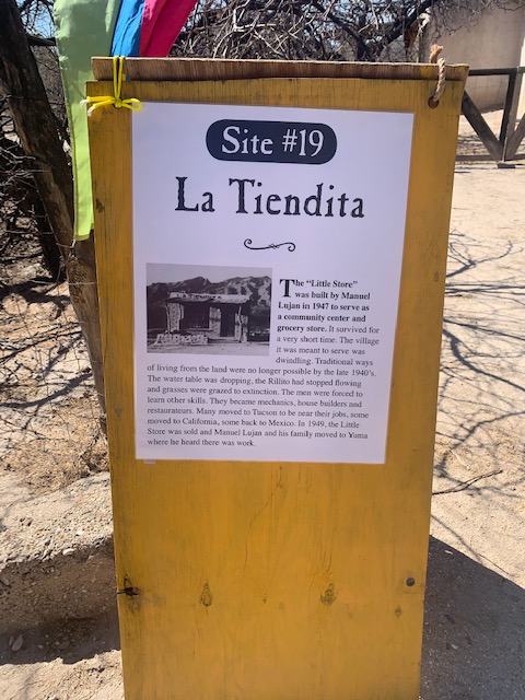La Tiendita, or “Little Store,” was built out of sun-dried adobe bricks by Manuel Lujan and his brother Juan in 1947. It was intended to serve as a community center and grocery store for the El Fuerte community, The store unfortunately was only in business for a short time. It was due to the decline of the El Fuerte community due to environmental challenges.  Manuel Lujan and his family eventually moved to Yuma in search of work marking La Tiendita’s end. The building at one time served as a studio for industrial designer and artist Giorgio Belloli.