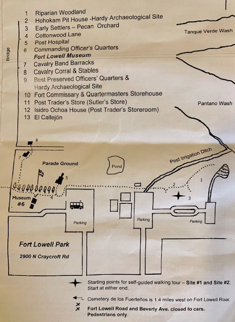 We went on a walk with archaeologist Homer Thiel. He took us across Craycroft Road to the other section of the park, which is closed unless special events are going on. There are also ruins on several sites on this side of the park, including three of the original seven officers’ quarters buildings.