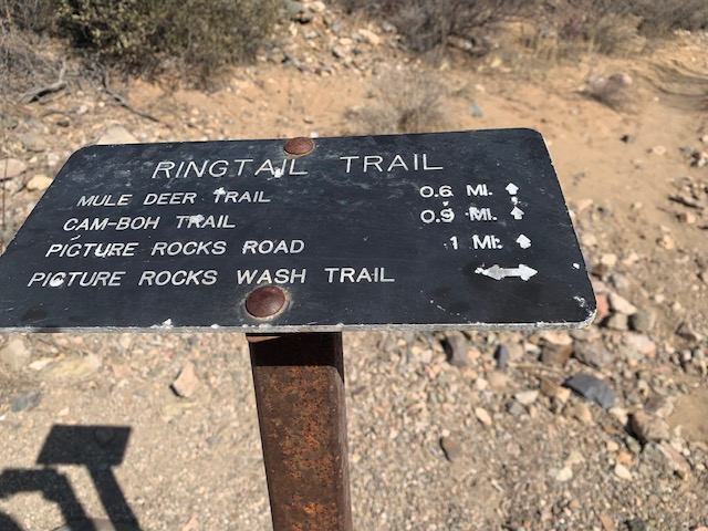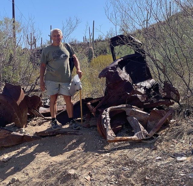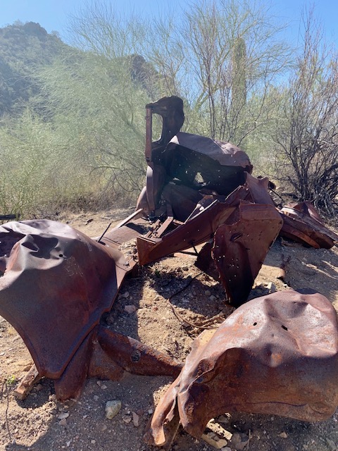 Then we picked up Cactus Canyon Trail and followed it to Coyote Pass Trail, then Picture Rocks Wash Trail. We continued down the wash and stopped at an old rusted out truck.