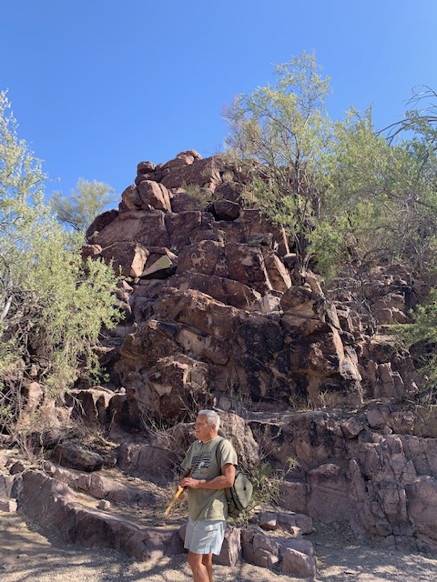 Homer Thiel spoke of another attraction to the fort, the Hohokam culture that existed here and in the Sonoran Desert from about AD 500 to 1450. The fort was a large Hohokam village that was here mainly because of the availability of a constant water source that made the area a great place to settle. Living in the desert it’s all about water. The Hohokam are well known for their beautiful painted pottery, elaborate projectile points, carved stone, shell items, ballcourts, and platform mounds.
