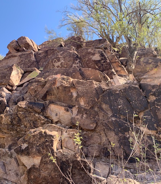 March 10th we hiked to see The Picture Rocks petroglyphs at the foothills of the Tucson Mountains and the Sonoran Desert. We drove to Camino del Cerro where to there is a place to park, and headed out to see the petroglyphs. The petroglyphs is a site with hundreds of petroglyphs from the Hohokam era and before carved into the rocks, we were excited to check them out. We started at the Thunderbird trail which passes through State land and a portion of Saguaro West National Park.