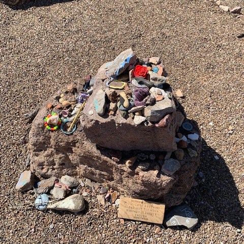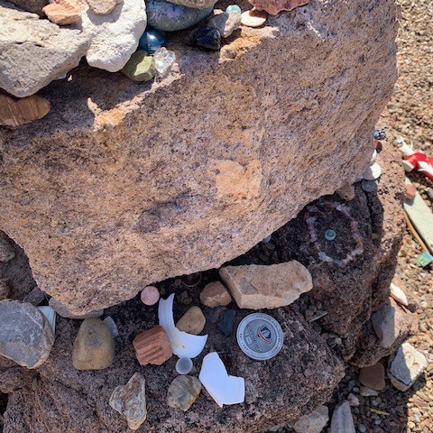 People leave personal items at the rock, I believe as a spiritual connection to express grief or remembrance, a simple offering of their faith.