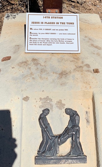 We’ve reached the 14th station of the cross, “Jesus is Laid in the Tomb,” this marks the end of the Jesus’s suffering and symbolizes the burial of Jesus, a time of sorrow and hope before his resurrection.