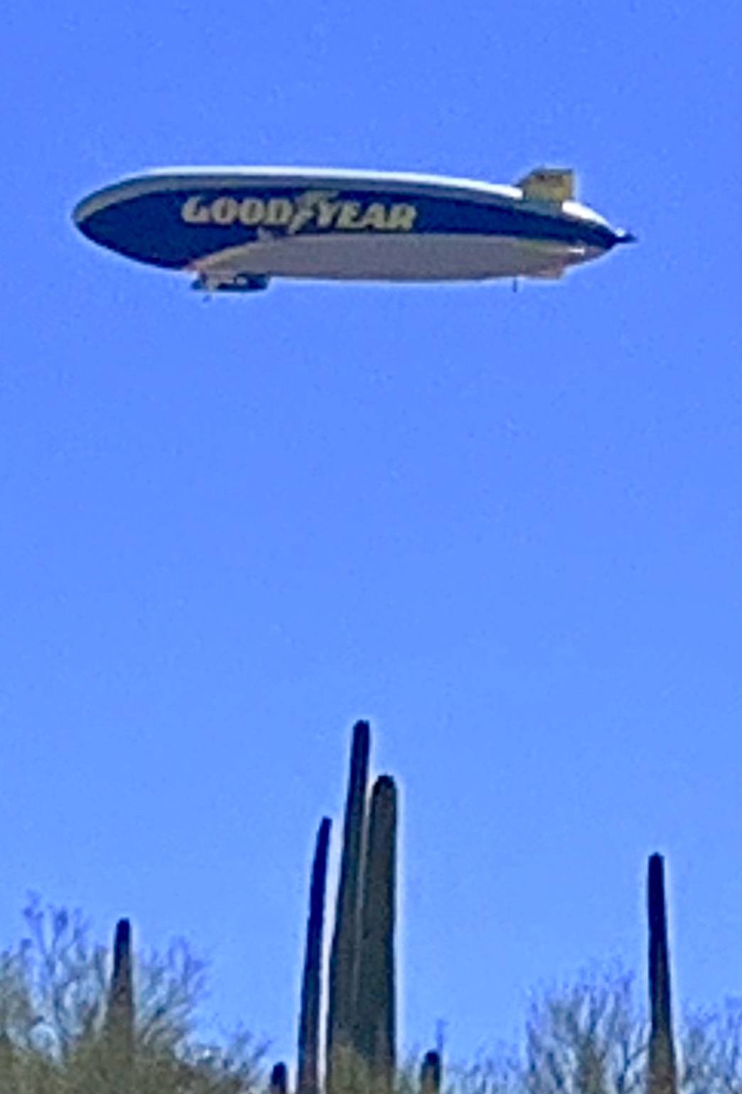 Walking on the trail above us. . . . . was it a bird, a plane, no it wasn’t superman, it was the Goodyear Blimp! up close and personal, We were both shocked to see it.