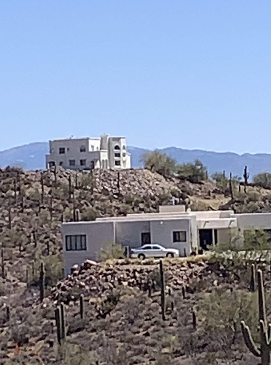 Walking on the trail on the other side of the wash were these mansions with beautiful views. On the down side, if there is one, they have to have their own roads to get to their driveways.