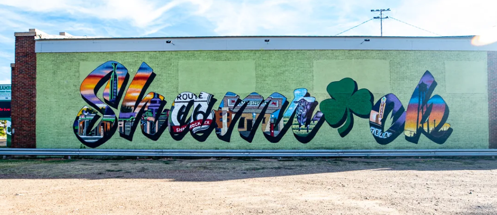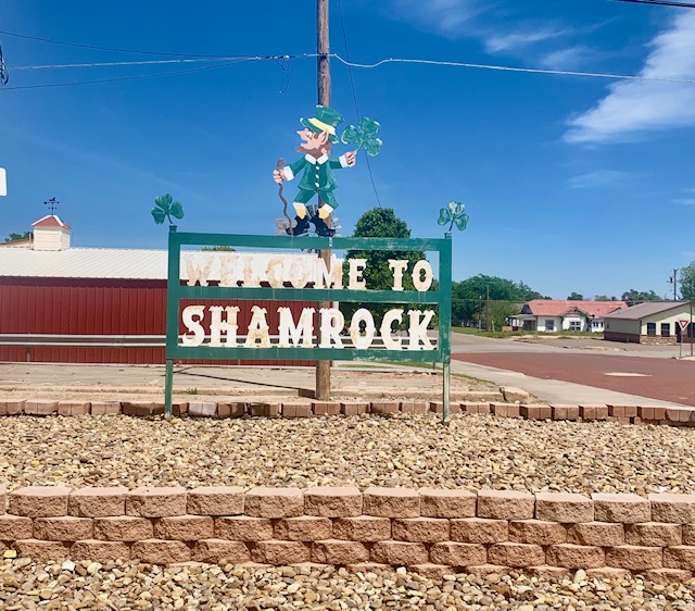Shamrock, TX. is on Interstate Highway 40 (here formerly U.S. Highway 66) in south central Wheeler County, was in the 1980s the largest town in the county. The name Shamrock was first suggested, for good luck and courage, by Irish immigrant sheep rancher George Nickel, when he applied in 1890 to open a post office. But it wasn’t until the railroad named the stop Shamrock in 1903, and the post office was finally named Shamrock, and in 1911 the name Shamrock finally stuck.