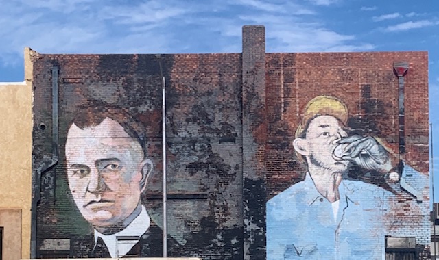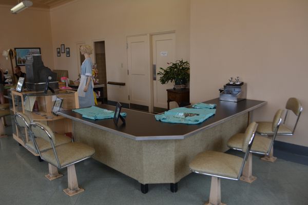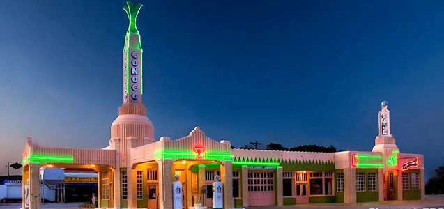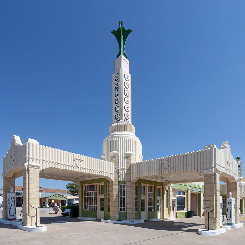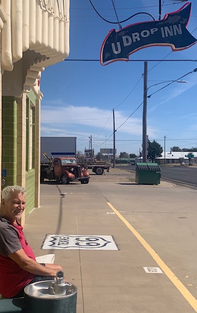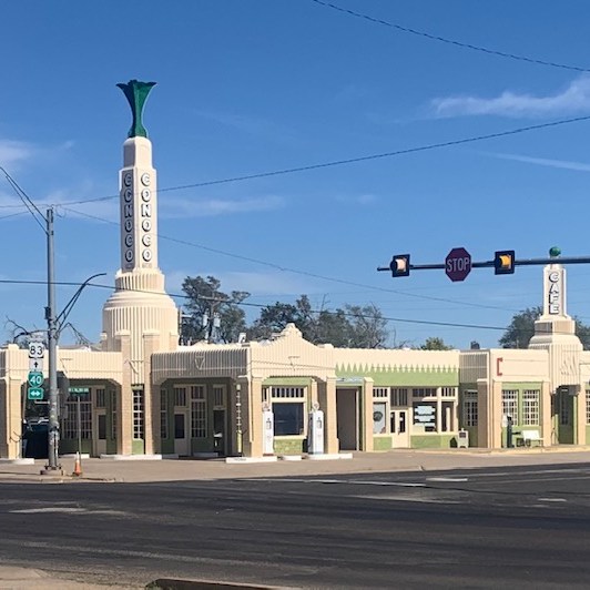 When we were here before The “Route 66 Station” in Shamrock, Texas, was closed, I’m glad it was open today it was a real treat to see the impressive building and eat lunch at the U-Drop in Cafe. This Art Deco building included the Tower Conoco Station, so named for the metal tulip-topped tower attached to the building. At one time, the U-Drop Inn was called “the swankiest of swank eating places” and “the most up-to-date edifice of its kind on U.S. Highway 66 between Oklahoma City and Amarillo.” The café was the only the one around in a 100 miles. The building which was a really different looking style building for being built 1936. It has traditionally held two separate business: “Tower Station,” a gas station on the western side, and one time the middle section was the Grey Hound Bus Terminal, and the “U-Drop Inn,” a café on the eastern side. Though it has passed hands several times in its history, the building has consistently housed the same types of businesses it was originally constructed for. The building fell into disrepair with the decommissioning of Route 66. It closed for business in the late 1990s. After it was listed on the National Register of Historic Places in September 1997, the building was purchased by the First National Bank of Shamrock, which then gave it to the city.