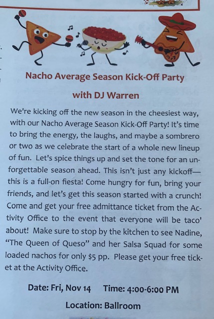 On November 14th, It was time for the Nacho party! Everyone got a huge plate of Nachos and fixings.