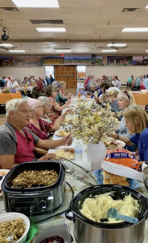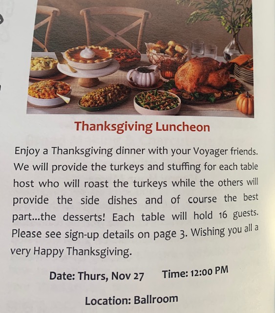 It was nice to greet other people we knew and didn’t know and say “Happy Thanksgiving” to them as well. We figure there was about 240 people in the ballroom. There was approximately 142 people at the very first Thanksgiving.