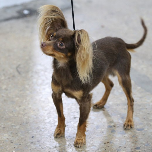 This Pomeranian dog looked like a bronze puff ball with a tiny face and legs.