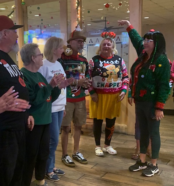 The people who wore sweaters looked good, even the ones who weren’t wearing a sweater looked good. It was a fun time, I’ll have to get an ugly sweater for next year.